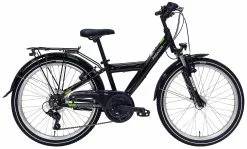 7005 Alu Rahmen, Suntour NVX-DS Federgabel einstellbar, 24-Gang Shimano Altus Schaltwerk und Schalthebel, Tourney Umwerfer und Kurbeln, Tektro HD-M275 hydr. Disc-Bremsen, DDM-2 Hohlkammer-Felgen, STYX Downhill-Lenker, A-Head Vorbau und Sattelstütze, Nabendynamo, 30 Lux LED-Lampe, Standrücklicht hinten auf dem Schutzblech