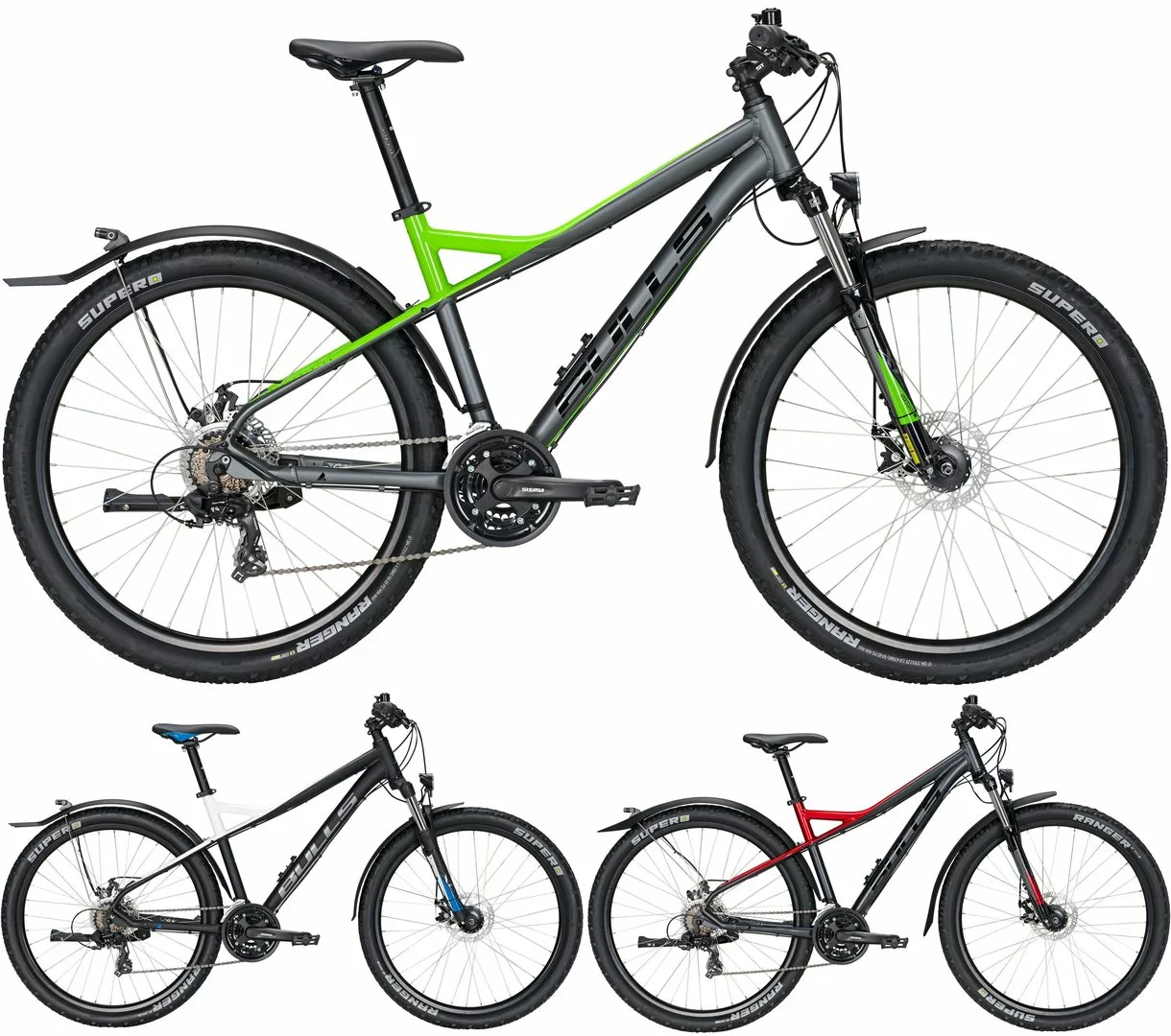6061 Alu-Rahmen, Suntour XCT-D Federgabel einstellbar, 21-Gang Tourney Schaltung mit EZ-Fire Schalthebeln, Suntour XCC Kurbeln, Shimano Nabendynamo, DDM-2 Alu-Hohlkammerfelgen, Tektro MD-M280 Disc-Bremsen (160/160mm), STYX Sattelstütze, Downhill-Lenker und Vorbau, LED-Lampe, Standrücklicht, Ständer, Schutzbleche