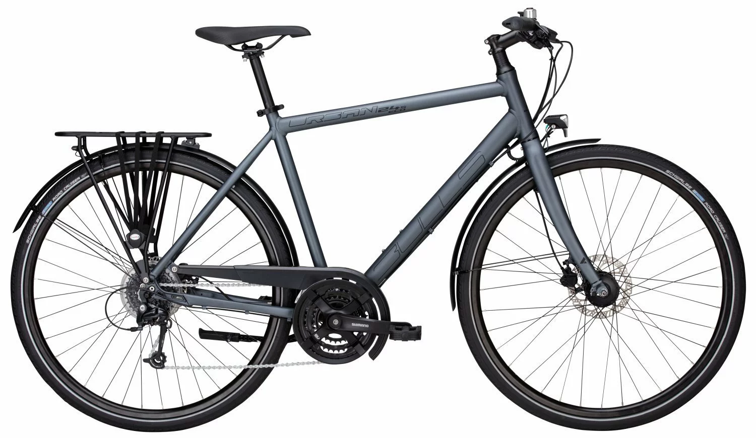 7005-Alurahmen, Alu Starrgabel, 24-Gang Shimano Deore Schaltwerk, Altus Schalthebel, Tourney Umwerfer und Kurbeln, Tektro HD-M285 Disc-Bremsen, DDM-2 Hohlkammer-Felgen, Nabendynamo, 30 Lux LED-Lampe, Supernova Rücklicht, Urban-Gepäckträger, Schutzbleche,