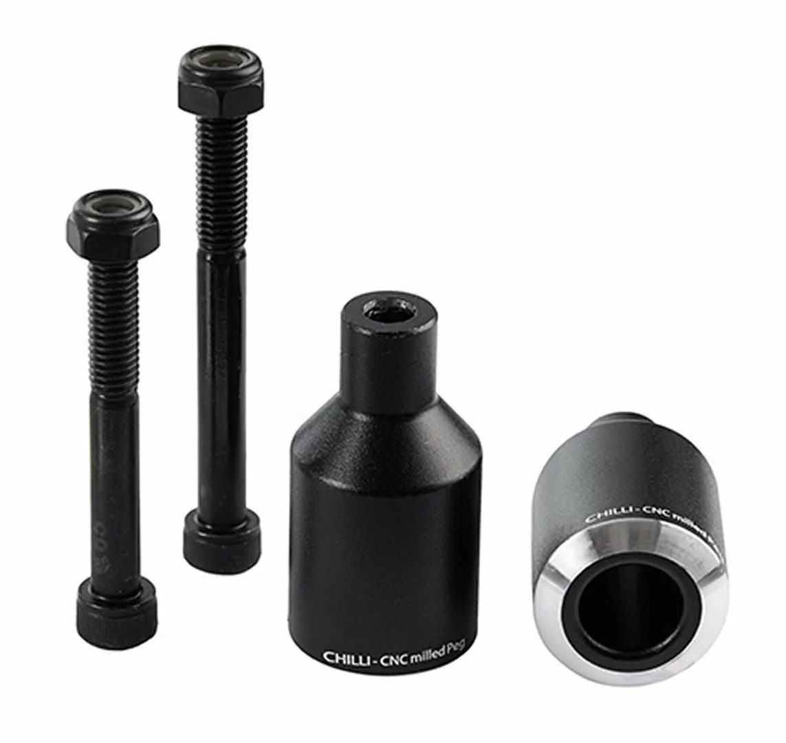 Chilli Rocket Pegs passen durch ihre Form perfekt auf das Handrail und sorgen somit für sicheren Halt. Die Pegs sind leicht zu montieren. Im Set sind: 2x Peg, 1x Achse vorne (6,7cm), 1x Achse hinten (7,7cm)