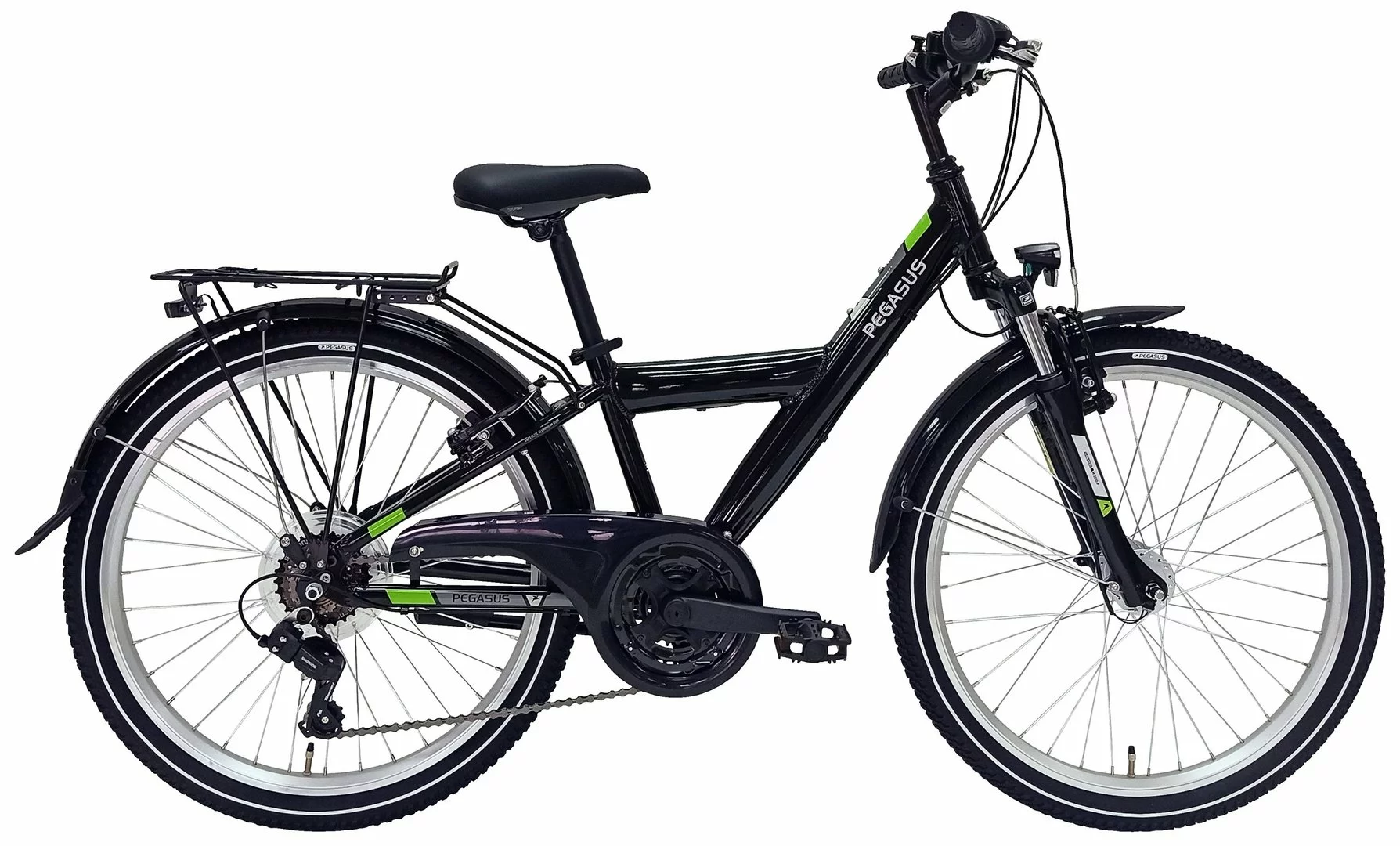 Big-Size Alurahmen mit Suntour M-3010-P Federgabel, Shimano Tourney Kettenschaltung mit Revo-Shift, STYX Alu Kurbeln, Alu V-Bremsen vorne und hinten, Alu-Hohlkammerfelgen, Downhill-Lenker, Kettenschutz, Straßenausstattung mit Nabendynamo, Standrücklicht und 30 Lux LED-Lampe, Schutzbleche, Gepäckträger und Kettenschutz