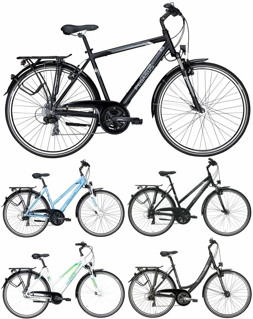 Alu Rahmen, Suntour M-3010 Federgabel, Shimano Tourney 21-Gang Schaltwerk und Umwerfer, Altus EZ-Fire, Suntour Kurbeln mit gekapseltem Lager, Alu V-Bremsen, Hohlkammer-Felgen, verstellb. Vorbau, Nabendynamo, LED-Lampe, Standrücklicht