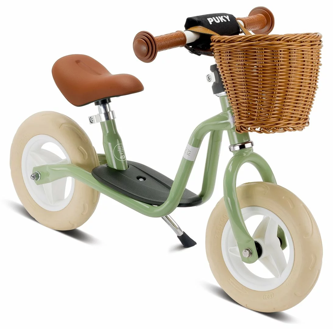 Das PUKY LR M Laufrad ist jetzt auch für die kleinen Helden ab 2 Jahren in stylischer Classic Optik erhältlich. Das PUKY LR M Classic kommt mit einem geflochtenen Lenkerkorb aus bruchsicherem Kunststoff. Splittern unmöglich! Sicherheitslenkergriffe und Lenkerpolster schützen die jungen Piloten zusätzlich. Wie von PUKY gewohnt lassen sich Lenker und Sattel in der Höhe verstellen, um eine möglichst lange Nutzungsdauer für das Kind zu gewährleisten. Der tiefe Rahmeneinstieg des PUKY LR M Classic vereinfacht das Auf- und Absteigen und sorgt für die nötige Sicherheit beim Losfahren und Bremsen. Bei längeren Rollphasen können die jungen Piloten ihre Füße problemlos auf dem cleveren Trittbrett des PUKY LR M Classic abstellen und die Fahrt genießen. Dafür sorgen nicht nur die hochwertige Schaumbereifung, sondern auch die kugelgelagerten Räder und die Lenkung. Mit den drei trendfarben retro-rosé, retro-blau und retro-grün, sowie den braunen Lenkergriffen und dem Sattel, zieht das PUKY LR M Classic alle Blicke auf sich.