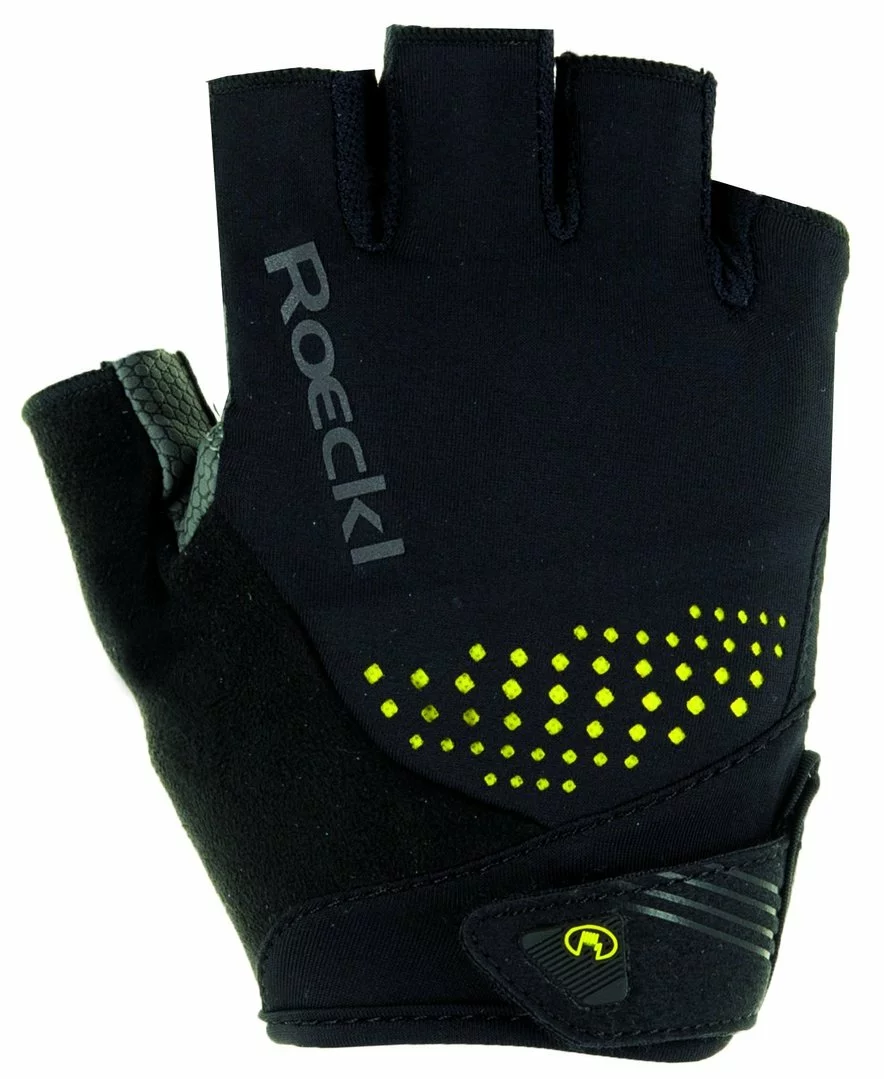 Innovative Materialien, höchste Verarbeitungsqualität und viel technische Finesse – der leichte, geschmeidige Performance-Radhandschuh IBERIA sitzt wie eine zweite Haut. Die Konstruktion macht’s möglich: Griffiges, atmungsaktives und elastisches ROECK-GRIP® wird direkt und vollflächig auf die XRD® Technology Polster der Innenhand laminiert. Dieses innovative, dünne und ergonomische Design bietet einen sehr direkten, taktilen und zugleich komfortablen Griff und vermindert spürbar die Ermüdung der Hände. Das Ergebnis: maximaler Komfort und rutschsicherer Halt am Lenker in einem. Die Oberhand ist mit stylischen, mit farbigem Mesh hinterlegten Cut-outs versehen. Außerdem wurde der IBERIA mit dem patentierten Schutz der druckempfindlichen Daumenbeuge COMFORT-INNOVATION ausgestattet. Die Ausziehhilfe PULL OFF SYSTEM von ROECKL SPORTS und der soft-wipe Daumen als Wisch- oder Taschentuch sind weitere clevere Details. Schick: reflektierende Designelemente und das kleine ROECKL Händchen auf dem Klettriegel.