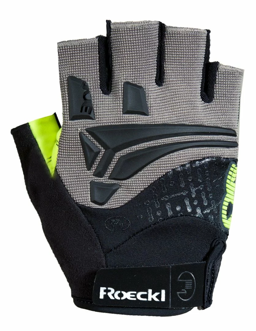 Der Inobe ist der Offroader unter den Kurzfingerhandschuhen. In ihm steckt nicht nur einiges an Ausstattung, er steckt auch einiges weg. Auf der Oberhand kombiniert ROECKL 2-Wege Spandex und Heavy Lycra. Die Handknöchel sind zusätzlich mit dreidimensionalen Rubber-Applikationen versehen. Die Innenhand besteht aus dem weichen, dünnen und zugleich strapazierfähigen DURASENSE. Der breite KEVLAR® Bund und die etwas längere Bauweise schützen im Sturzfall die sensiblen Pulsbereiche am Handgelenk. Zur Ausstattung: ERGONOMIC CUT Gelpolsterung und die nahtlose Polsterung der Daumenbeuge COMFORT-INNOVATION dämpfen Druck sowie Vibrationen und beugen Überlastungsbeschwerden vor. Großflächige Silikonisierungen garantieren perfekte Lenkerkontrolle. Dank der Ausrüstung mit ALL-WEATHER-GRIP ist auch bei Nässe eine gute Griffigkeit gewährleistet. Das ROECKL exklusive PULL OFF SYSTEM erleichtert das Ausziehen der Handschuhe. Der bewährte soft-wipe Daumen und ein REFLECT Riegel runden die Top-Ausstattung ab.